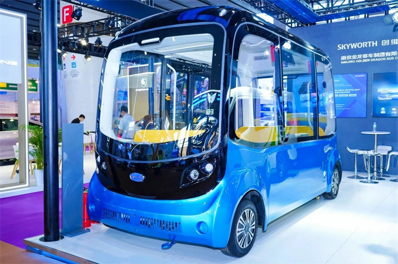 Il veicolo turistico senza pilota di livello Blue Whale L4, sviluppato in modo indipendente da Kaiwo Group, è diventato il fulcro della sala espositiva con il suo design biomimetico, la cabina di pilotaggio intelligente senza volante e le principali capacità di guida autonoma di livello L4. Il veicolo integra la guida remota 5G, la percezione panoramica a 360 gradi e la tecnologia di guida autonoma a bassa velocità, che può essere applicata in modo flessibile a vari scenari come parchi tecnologici, attrazioni turistiche, hub aeroportuali e resort. Si tratta di una pietra miliare importante per Skyworth Automotive per delineare il futuro del trasporto intelligente.